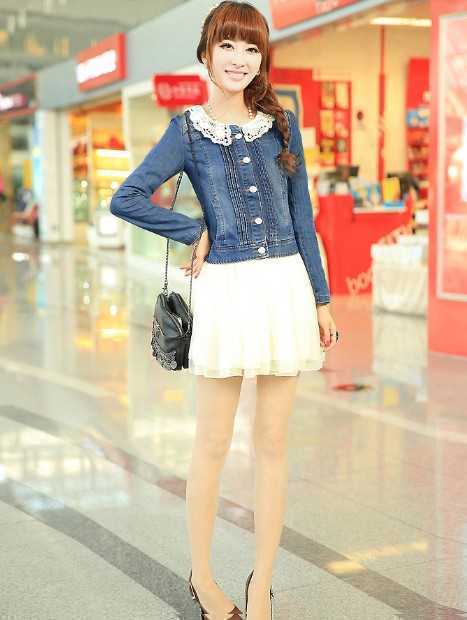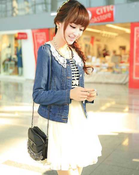 侧面看蕾丝牛仔外套,很显腰身曲线美,穿出优雅大气。