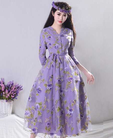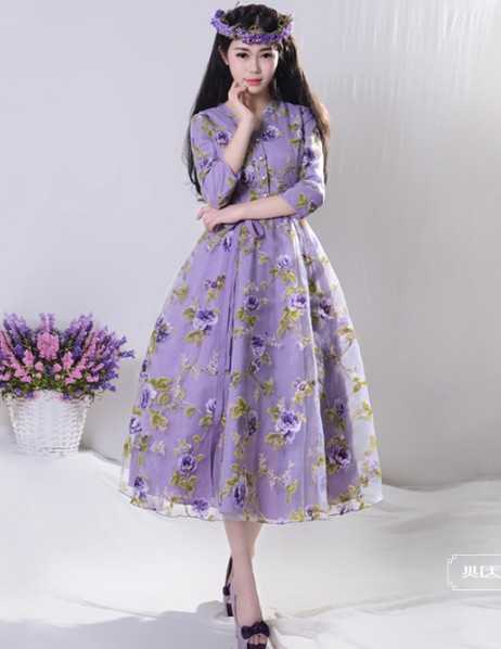 春季紫色欧根纱连衣裙,充满了浪漫的色彩,搭配紫色蝴蝶结高跟鞋,衬出白皙脚步肤色,搭配仙美紫色花裙,完美打造出优雅花仙美范儿。