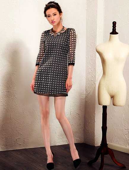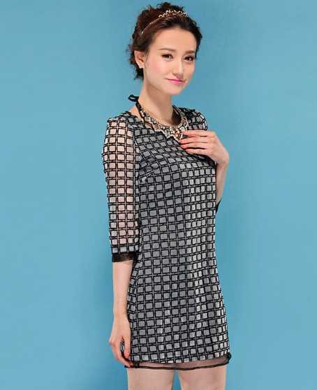 春季欧根纱格子连衣裙,穿出干练又显优雅气质。