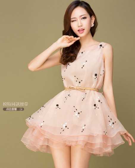 春季粉色欧根纱蓬蓬裙,粉嫩的颜色是许多女性们的最爱,搭配裸色细腰带,很显纤细腰部曲线美,搭配裸色高跟鞋,穿出优雅女性气质。