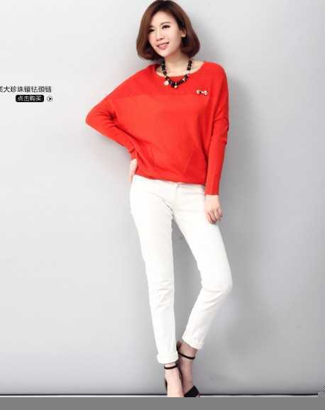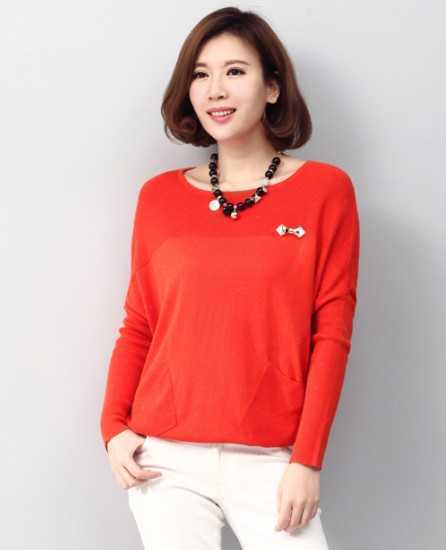 春季橙色套头针织衫,时尚的蝙蝠袖设计,穿出舒适又显时尚。