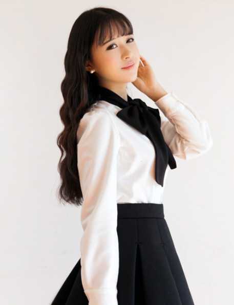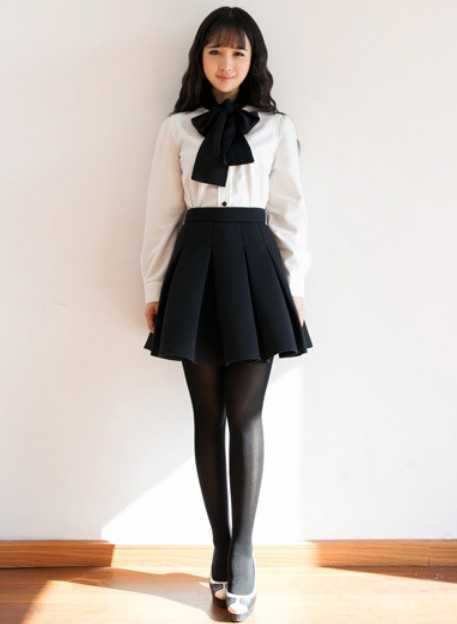 文艺范春季百搭衬衫,黑色蝴蝶结点缀,更凸显出时尚感,搭配黑色百褶短裙,很显时尚学院风,加上显瘦黑色打底裤和白色高跟鞋,经典的黑白搭配,完美让你穿出时尚学院风。