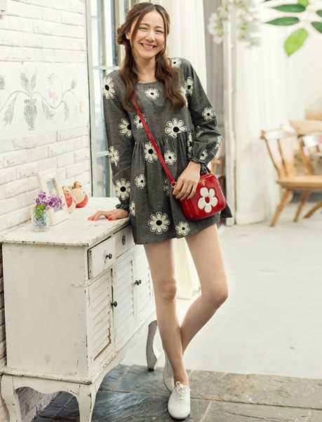 春季复古花朵连衣裙,白色花朵点缀更凸显出清新文艺气息,搭配简单白色单鞋,穿着舒适又时尚,加上花朵红色小包包,完美打造出复古风文艺范儿。