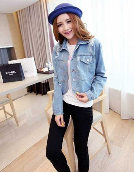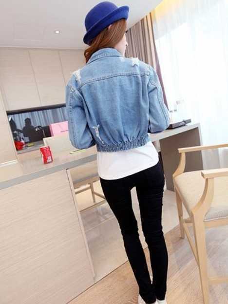 春季破洞牛仔外套,收腰的款式,完美展现出纤细腰身曲线美。
