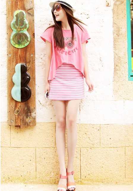 粉嫩的连衣裙很受女性们的亲睐,搭配简约粉色T恤衫,时尚又甜美,拼色款高跟鞋,拉长纤细腿部曲线,秀出高挑身材。