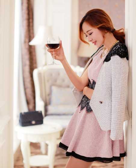 春季蕾丝拼接百褶背心裙,搭配小香风薄款外套,散发出迷人的女人味,再喝上一杯高档红酒,生活就该这样精致享受过着。