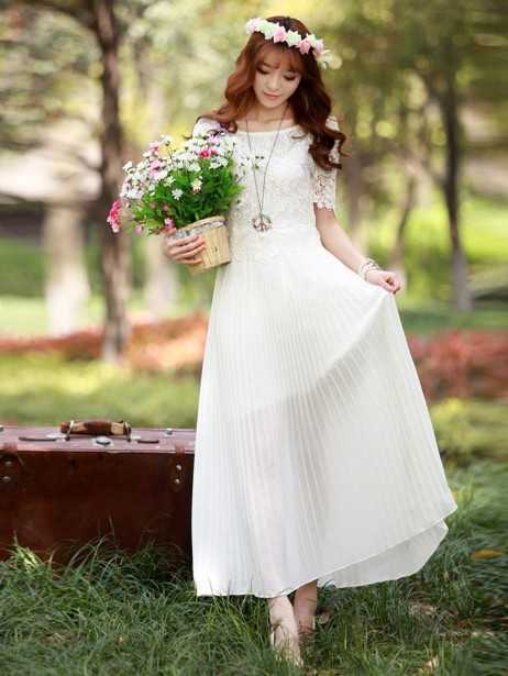 仙白色春季镂空连衣裙搭配