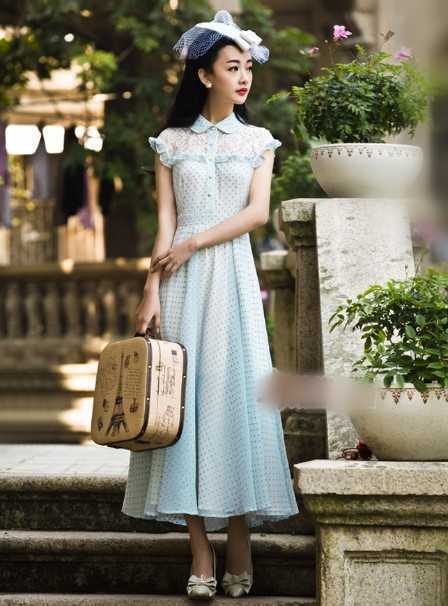 春季波点连衣裙,白色镂空蕾丝设计,仙美中又透露出几分性感味道。