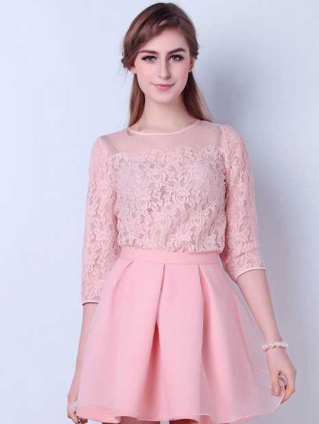 韩版范十足粉色纱裙,搭配粉色镂空蕾丝套头衫,仙美又性感,搭配粉色高跟鞋,一身粉嫩的装扮尽展淑女范儿。