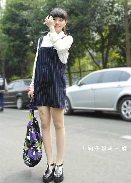 复古学院风条纹背带裤,嫩嫩的很减龄,搭配净白色百搭衬衫,清爽又时尚,搭配黑色厚底鞋,穿出随心清新风。