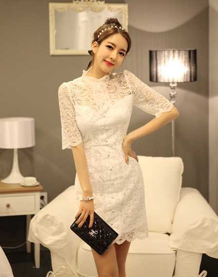 春季白色蕾丝连衣裙,镂空设计性感又不裸露,完美提升女性女人味。