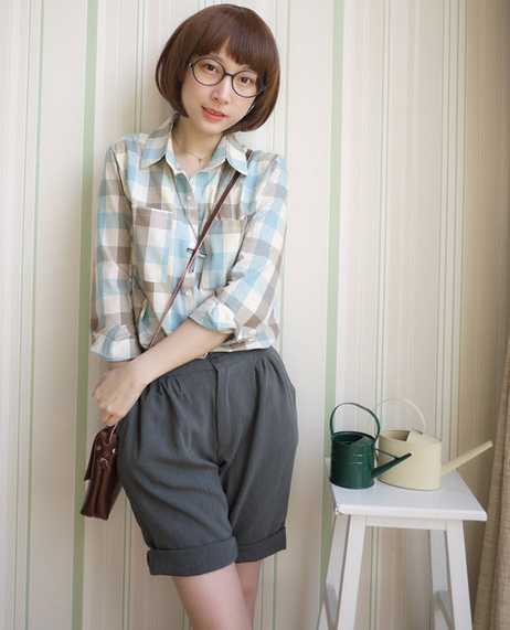 一件BF风休闲格子衬衫,随意搭配很百搭时尚喔。