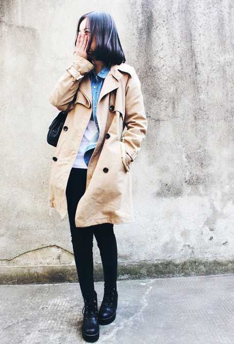 帅气的大风衣,秋天怎能少得了呢,适合男朋友穿的长度,在Penni的身上有另一种风味,搭配一条黑色的紧身小脚裤,和黑色的厚底小短靴,无一不透露出男孩子大气的风范。