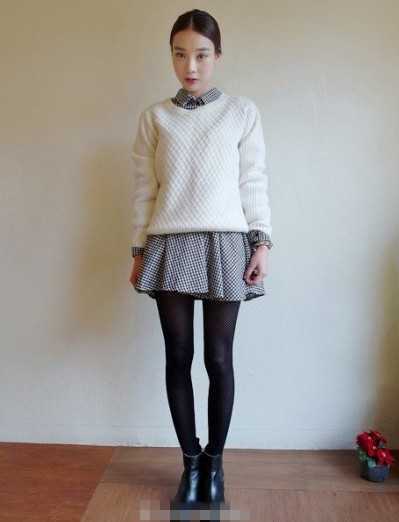 韩范纯白色粗纹毛衣,穿起来非常清新可人,内搭永不过时的立体领子格子连衣裙,非常百搭好看,在寒冷冬季再穿搭上性感百搭的黑袜裤就很美了,尽显街头韩范气质。