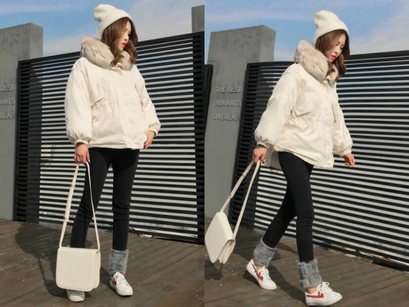 短款的小棉服很适合小个子女生穿着,穿起来有显高的效果,厚实丰盈的小棉服时尚大方,脖子上一圈厚实的毛领特别暖和,围巾都可以省了,下身一条黑色加绒加厚的紧身裤,裤脚上还有一圈暖暖的毛保暖,再戴上一顶针织帽,就可以轻轻松松凹造型了。
