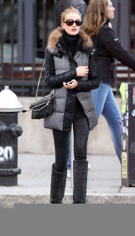 这款羽绒服的剪裁很有线条,十分修身,黑灰的拼色也是时尚万分,而且容易搭配,帽子上的毛毛随风飘动,使这款羽绒服更加的灵动,黑色的紧身裤可是搭配羽绒服的最佳伴侣哦,加上一双高筒鞋,简单却不失气质。
