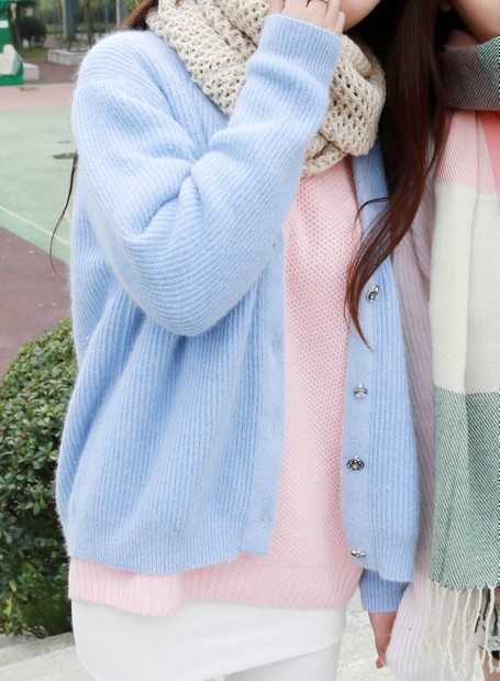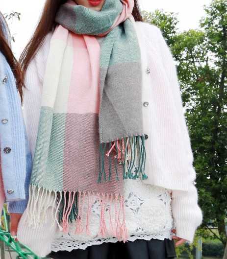 性感蕾丝印花雪白色毛衣,与粉嫩嫩的开衫毛衣搭配很仙很唯美,配上一条流苏撞色格子围巾,让你在冬日温暖又时尚。