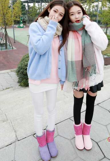 很温暖甜美的一款闺蜜装,围上保暖超舒适的围巾,甜美风迎面扑来,给人一种清新扑鼻的洋气。