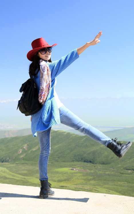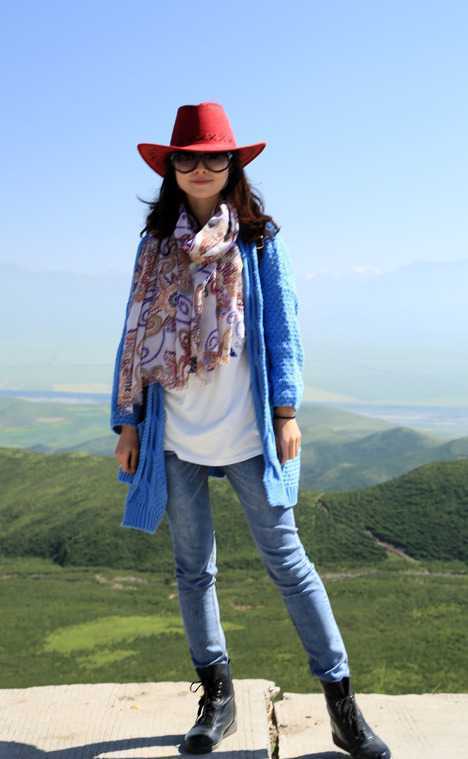 站在一览众山小的高山上,感受美丽大自然美景,长款蓝色针织衫,搭配修身的牛仔裤,很显瘦显高,加上酷酷的马丁靴,如此休闲的出游装扮,让你轻松穿梭每一个你喜欢的街道。