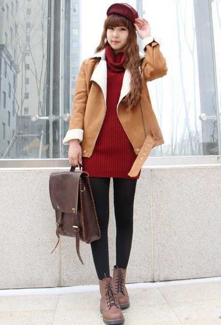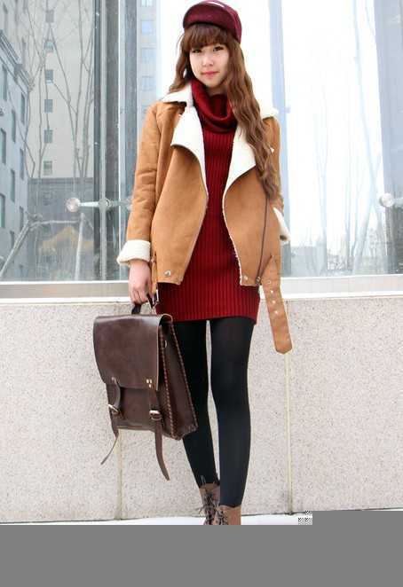 帅气的羊羔毛大翻领 ,看起来特别是酷气时尚,内搭最流行酒红色针织衫,在冬季穿着时尚与温暖兼并,轻松蜕变成时尚大咖。