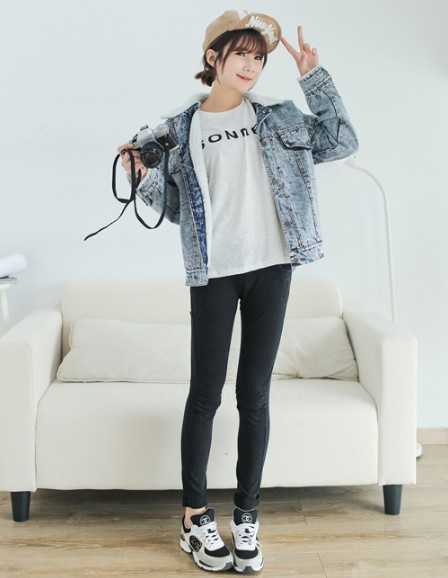 简约又不失帅酷的洗水短款牛仔外套,轻松搭配简单纯色的打底衫,下身穿搭黑色紧身裤和休闲运动鞋,随手拎起一个时尚照相机,随时随地冬季帅气时尚出游。