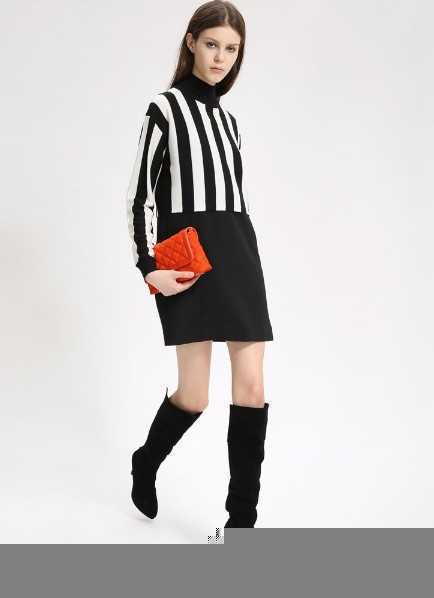 经典的黑色拼接款,潮流时尚触感,搭配显瘦黑色过膝长靴,穿起欧美大牌范儿,随意手拎显眼的橙色手拿包,散发出浓郁的女人味,打造出轻熟女冬日style。