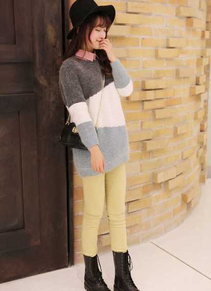 休闲款的紧身小脚裤,显瘦又时尚,搭配个性独特的拼接兔毛衣,穿出甜美感十足冬装,加上搭配黑色经典绑带式短靴,穿出显瘦时尚冬日搭配,胖女孩轻松告别冬季臃肿装扮。