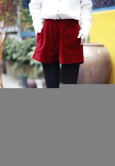 酒红色的复古短裤,是2014年最流行的时尚单品,百搭又时尚,轻松穿出时尚感十足冬装。