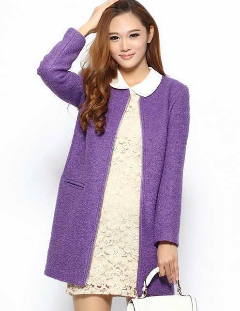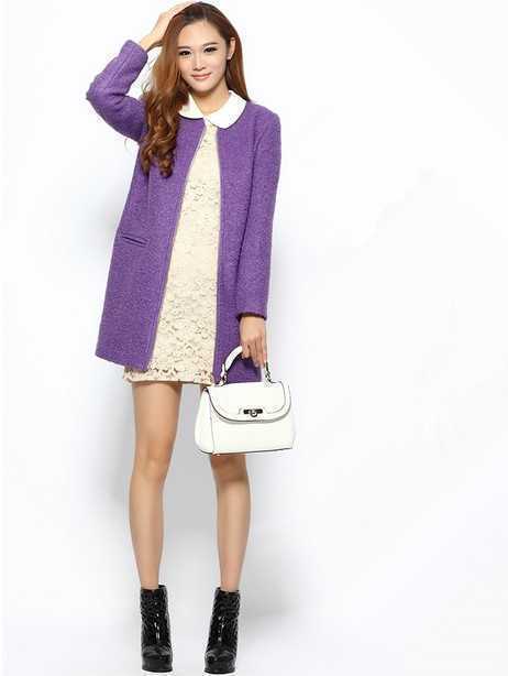 韩版的兰花紫厚外套,内搭小性感又不失甜美的连衣裙,穿出时尚甜美感,随意搭配黑色高跟鞋,秀出纤细完美腿形,轻松穿出乖巧冬日装扮。