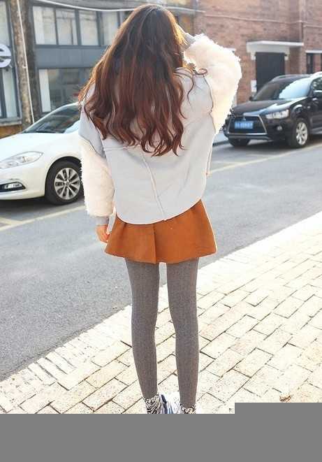 背后看棕色高腰短裙,一样的时尚好看,超短的裙子设计,给人一种高挑的视觉感受,让你冬日穿出超显高装扮。