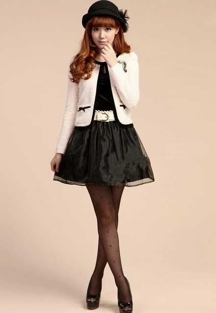甜美的小香风短外套,内搭甜美感洋溢的黑色蓬蓬裙 ,穿出甜美又不失时尚感的冬装,搭配小性感的丝袜和甜美的蝴蝶结高跟鞋,散发出迷人的甜美气质,瞬间打造出乖乖女装扮,让你穿出淑女名媛范儿。