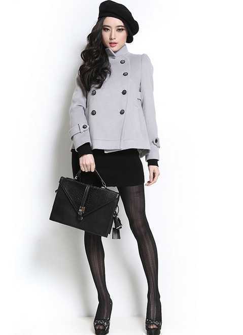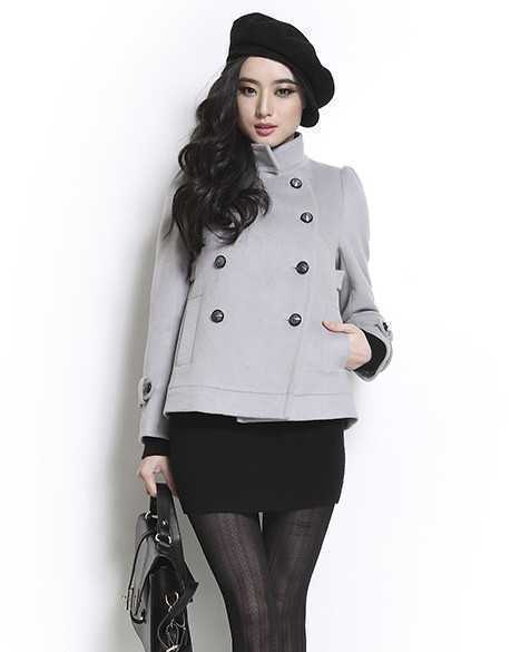 经典双排扣短款灰色外套
