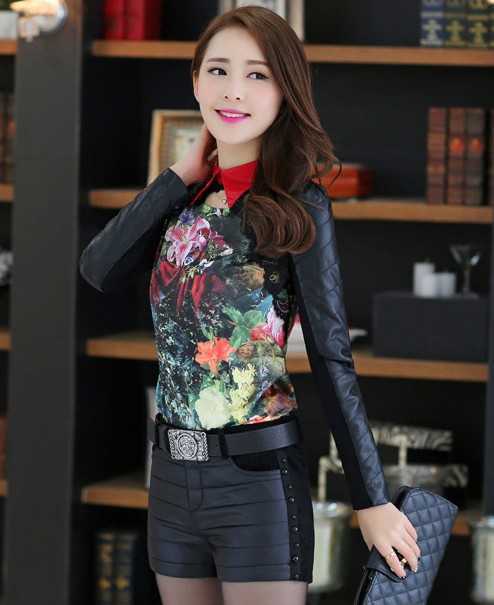 复古的大红花黑色蕾丝打底衫,搭配皮质百搭黑色短裤,穿出帅酷时尚范儿,随意手拿小香风包包,尽展性感迷人女性魅力。