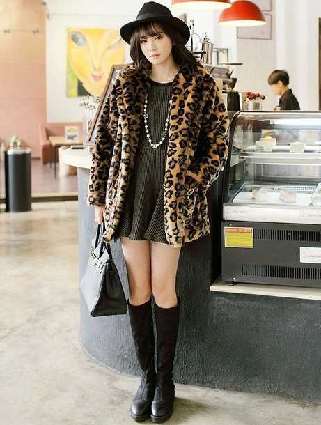 奢华贵气的豹纹貂毛外套,搭配淑女小香风款连衣裙,穿出大家闺秀复古范儿,搭配超显瘦黑色长靴,穿出2014年冬季时尚与温暖兼并的装扮。