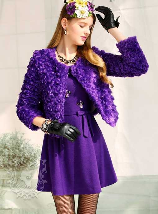 气质型的紫色无袖淑女裙,搭配紫色奢华绒毛外套,穿出高贵淑女冬装,随意搭配简约鞋子,轻松穿出时尚淑女范儿。