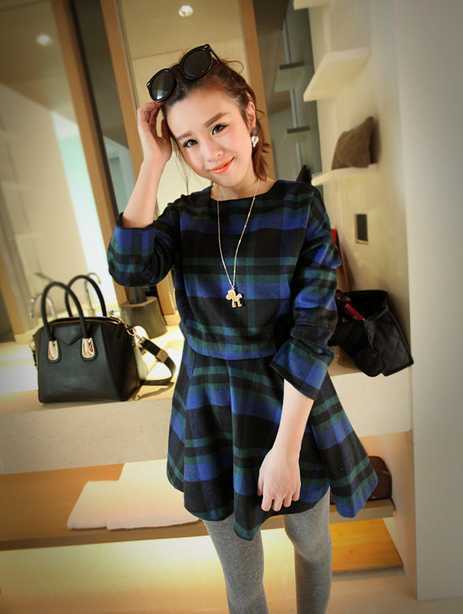 凸显气质的格子冬季套头连衣裙,外穿内搭一样的好看时尚。