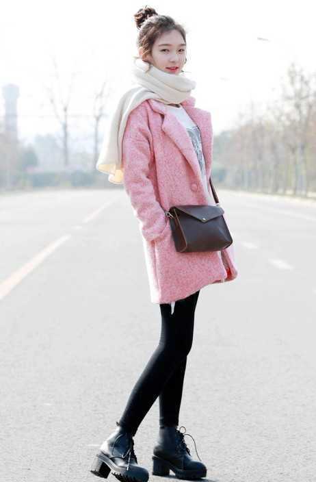甜美嫩粉色大翻领毛呢外套,搭配蕾丝休闲T-shirt衫,尽显温婉优雅女性气质,下身搭配黑色的打底裤,穿出时尚范十足的冬日装扮。黑与白的经典搭配,是永不过时的搭配法,喜欢的朋友们不妨学一学。