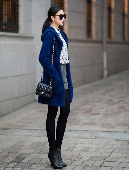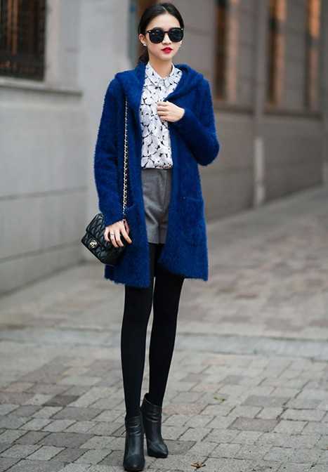 复古风的藏蓝色长款针织衫,搭配净白色衬衫和灰色短裤,增添了几分优雅气质,穿出优雅大牌国际范儿,让你走在街上回头率百分百。