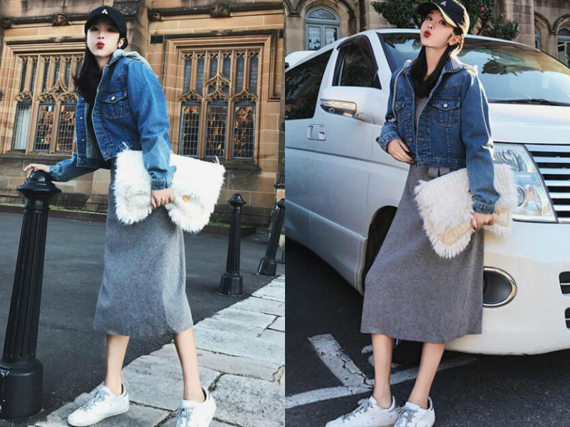 要想穿出休闲风,不妨试试这款穿搭。简约的牛仔短外套经典又百搭,内搭一条花灰色棉质长裙,整体风格轻松随意,头戴棒球帽加一双白色板鞋更显时尚运动风。