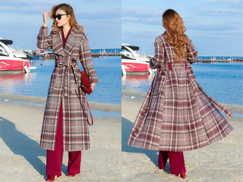 说到今年大衣的版型,A型款可谓是佼佼者,收腰的设计令这款A型的格纹外套看起来拉风又显瘦,腰带一系立刻露出纤纤小蛮腰。内搭一条红色的连体长裤,与外套颜色相融合,加上脚穿一双红色的高跟鞋和手上的红色包包,整套装扮配合妹子的气质,显得气场十足,颇有霸道女总裁的既视感。