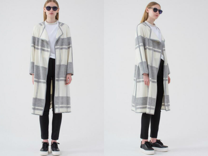 妹子这样的装扮真是酷帅十足,简直是女特工既视感有木有?以一件白色T恤搭配一条黑色紧身长裤作为打底,简约而经典耐看,外搭一件灰白拼接的格纹外套,下摆长至膝盖,腿型更显修长,加上头发梳理得一丝不苟,再戴上墨镜,又犹如走T台的模特般充满气场。