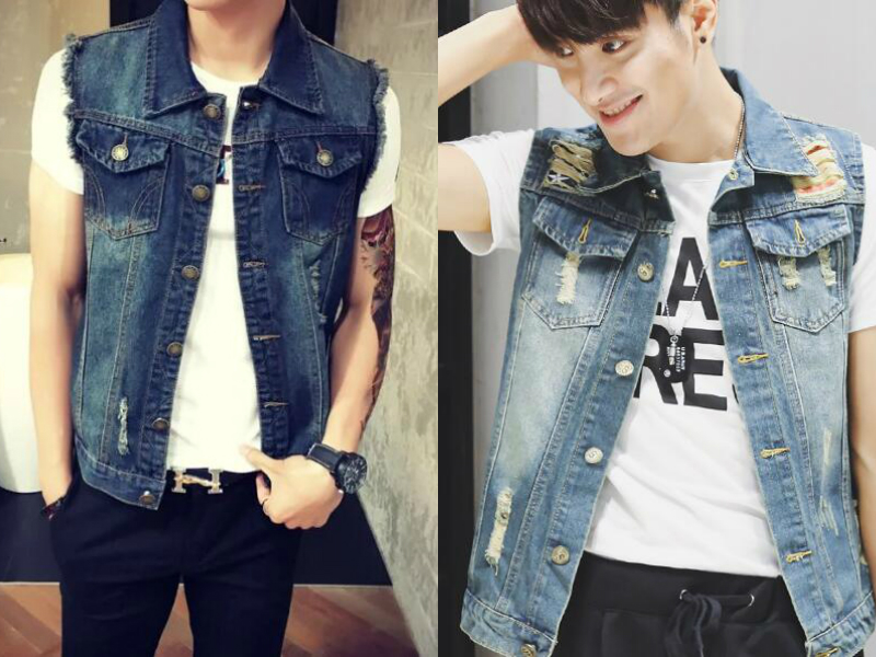 牛仔马甲时髦有型,简约的款式,充满了男生的阳光味道,里面配上T恤衫,利落帅气,也是很有前卫的潮男品味,很简单的的搭配就能穿出男神范。