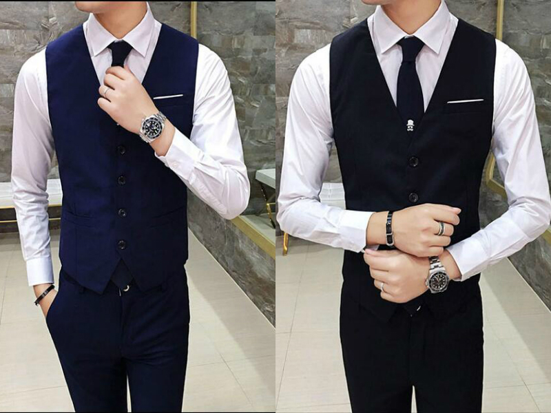 很正式的一款马甲,点缀上紧密的几颗小纽扣,黑白的成熟颜色,也是很有男人魅力,配上领带和衬衫,还有西装长裤,休闲西装的搭配显得男士稳重从容。