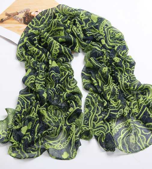 不规则的小碎花印花设计,很清新很迷人,长款的围巾微风吹起很飘逸很仙美,软滑透气的棉麻面料,醒目的绿色更是让你清爽逼人。