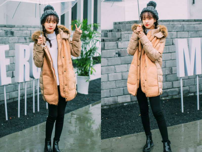 可以说冬天出现最多的帽子当数毛线帽了,毛线料子的抗寒效果非常好,而且柔软贴头皮,戴着很舒服。妹子这顶深灰色毛线帽看起来简单百搭,帽子上的毛球设计更添可爱感,身上穿一件浅橙色中长棉衣搭一条黑色紧身裤,耐看又修身,加上帽子的修饰作用,让妹子看起来倍显娇小玲珑。