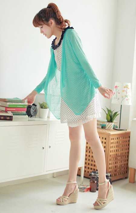 不太凉的秋天穿一件薄薄的外套就刚刚好了,糖果色的调子充满甜美气质,搭配连衣裙会有很不一样的感觉。这款披肩可以当防晒衫来穿,很薄的一件,和打底衫搭配起来会有与众不同的效果,很适合秋天穿着的说。