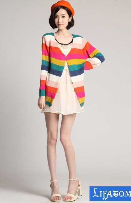 靓丽的彩虹色绝对会让你成为秋天的亮点,韩版的百搭小外套是入秋的最佳装备哦!搭配一条裸色的纱裙,加上一双高跟凉鞋,优雅随意又充满温柔气质,淡淡的清雅气息最让人心动!