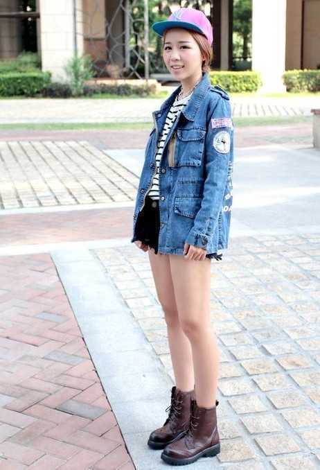 这款涂鸦徽章都特别好看的牛仔外套,长度也是刚好,搭配小T小短裤,简单又有型,头上的那顶拼色帽子,更是将原宿风展现得淋漓尽致。