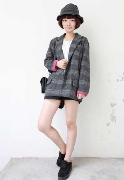 旧旧的格子纹西装,穿上去可一点都不土,袖口耀眼的玫红色拼接十分独特,长度也是刚刚的好,里面搭个小T小短裤什么的,既显高又显瘦,是不少MM的搭配最爱哦。