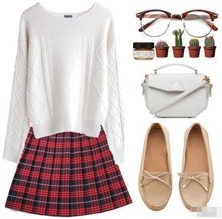 最经典的苏格兰格子纹,皱褶也十分整齐好看,搭配一件简单的白色毛衣,和一双豆豆单鞋,长发飘飘的学姐风马上就展现出来了,有木有?喜欢纯纯搭配的MM们一定不要错过哦。
